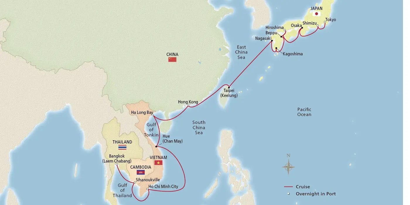 Trace the coast of East Asia when you combine Far Eastern Horizons and Southeast Asia & Hong Kong. This enlightening 29-day voyage takes you into the heart of the Far East and Indochina. Visit five fascinating countries, from Japan and China to Vietnam and Thailand, uncovering the traditions of deeply spiritual nations and their remarkable histories. Overnight stays in eight ports provide a closer look at the region’s many vibrant cultures.